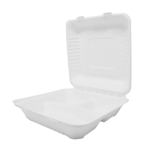Coloca tus alimentos en porciones sin que se combinen con la Almeja 9×9 «con 3 Divisiones Biodegradables. Es ideal para colocar alimentos como hamburguesas, papas, baguettes, quesadillas y tartas entre muchos más.