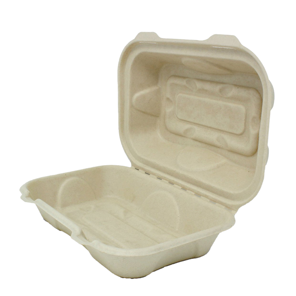 Transporta o almacena tus alimentos sólidos o líquidos como hamburguesas, guisados, enchiladas entre otras opciones más en la Almeja Rectangular 9×6″ Paja de Trigo Biodegradable.